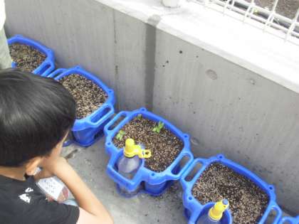「芽が出てきました」「僕のも、みてくださ〜い」