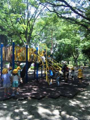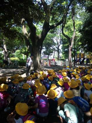 5クラスの1年生、みんなで歩いて祖師谷公園に到着です。