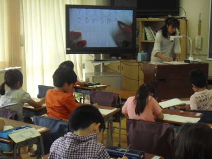 最後に実物投影機で写した先生のノートの書き方を手本に、今日の学習をまとめました。