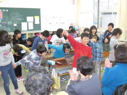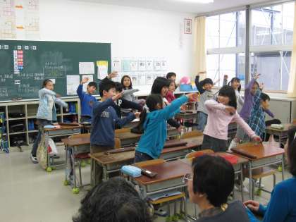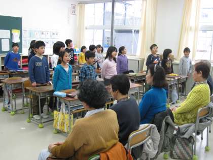 地域の方々と給食を食べ、お話を聞かせていただいた後は、子どもたちが頑張る番です。今日のために各学級で練習してきたものを披露します。
