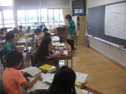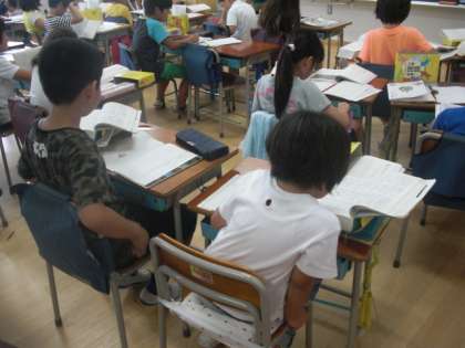 言葉を全員が同じ辞典を使って、引く練習をしていました。