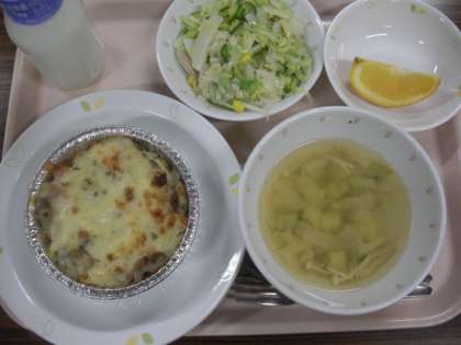 今日はドリアです。鶏肉やエビ、野菜が入った