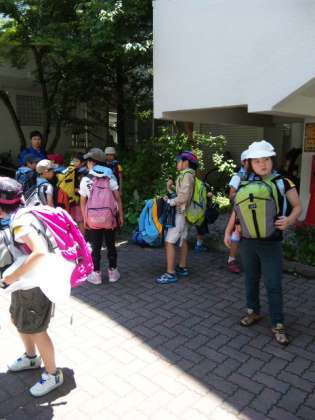 今学園に着きました。これから園庭に移動してランチタイムです。