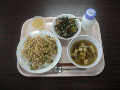 今日は、凍り豆腐を使った「ふわふわそぼろ丼」です。