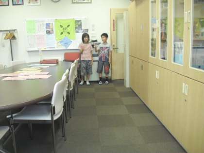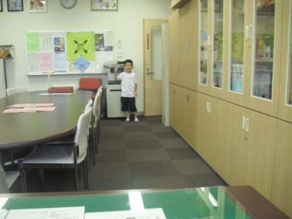 出欠席の報告で子どもたちがやってきました。