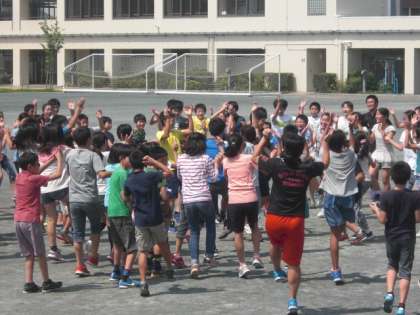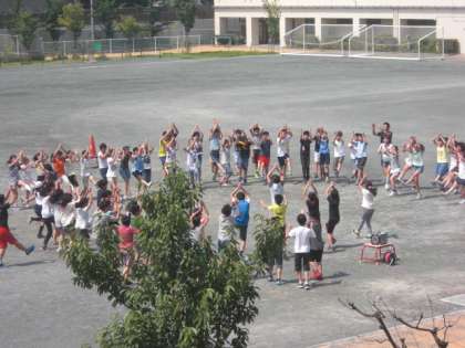 校庭から「ジンギスカン」の曲が聞こえてきます。
