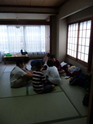 宿舎春茂登につきました。避難訓練の後、部屋ごとにカードゲームや葉書書きをして過ごしています。