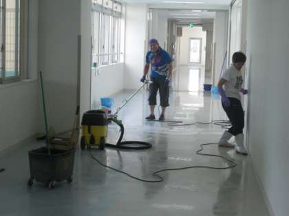 夏休みに入って、学校主事さんたちは、広ーい校舎内を