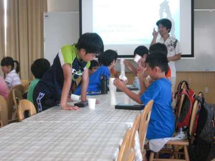 今日は、紙コップの積み重ねやペットボトルの不思議を探る