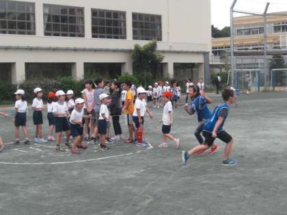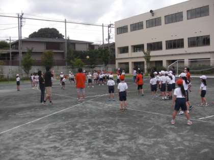 校庭では、ドッジボールをしたり、三角オニをしたりと