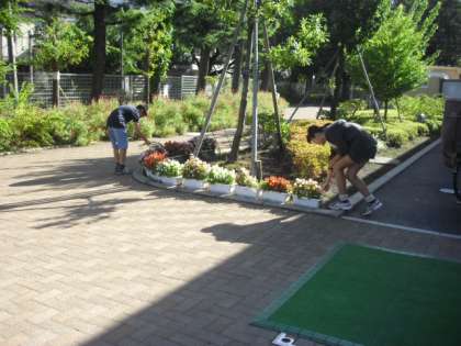 栽培委員会の子どもが花の小道の雑草を抜いてくれたり、花の水やりをしてくれたりと