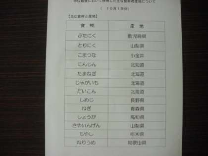10月1日の給食