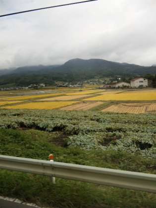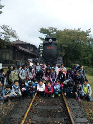 田園風景の中、民族資料館に着きました。SLの前で記念撮影をパチリ!