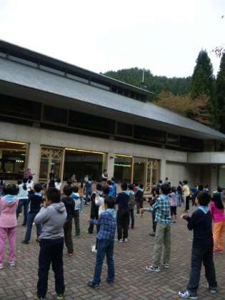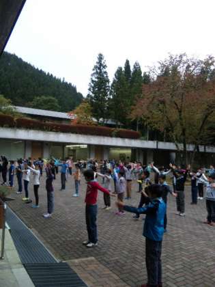 朝会で新鮮な空気を吸い込んで、一日のスタートです。