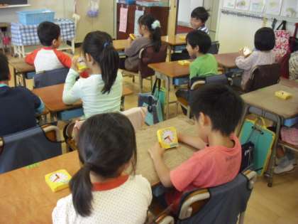 時計の模型を使って、長針、短針の動きを理解しながら、一日の生活場面と結び付けて時刻を読む学習をしました。