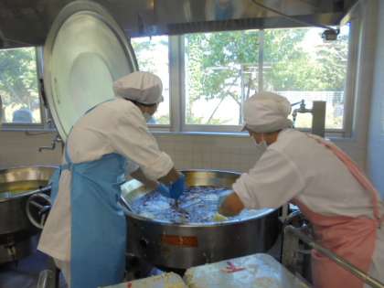 今日の給食は、7種類の食材が入った”かきあげ”でした。