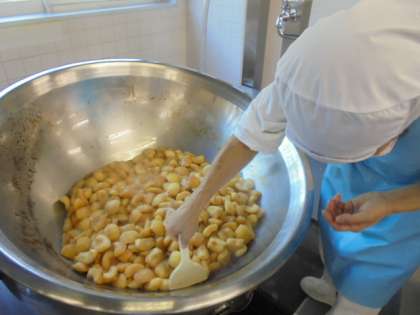 砂糖を絡めたりんごをこがさないように煮詰めます。