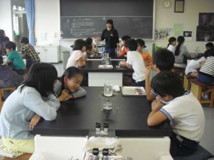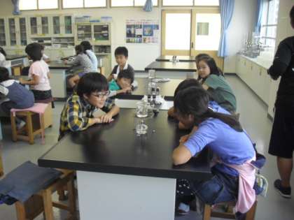 理科室で、観察・実験の授業です。
