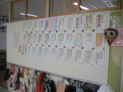 教室前の廊下に掲示しています。