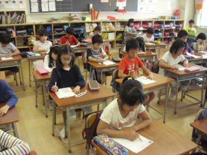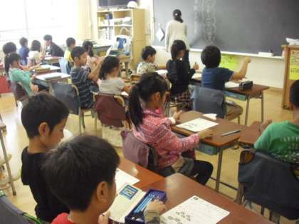 答え合わせをしながら、「全部まるがつきました」と嬉しそうにプリントを見せてくれる児童もいました。