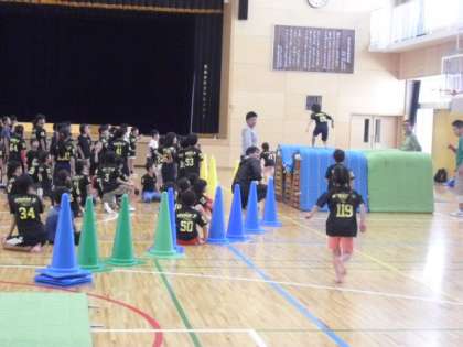 今日はそのコースを使った練習を体育館でしています。