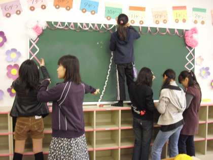 今日登校しているのは、新6年生と新2年生です。6年生は入学式の準備に大忙しです。2年生は入学式の後に1年生に見せる演技の練習に一生懸命です。