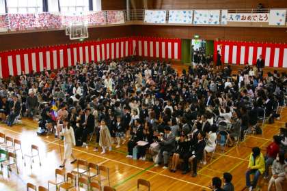 平成22年度の入学式です。新1年生100名を迎えました。みんなとても立派に話を聞いていて、これからがとても楽しみになりました。