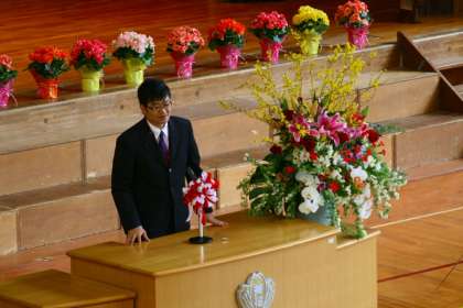 PTA会長は今年度より矢野健一さんです。入学式でご挨拶をいただきました。