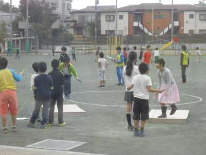 おはようございます。土曜授業の朝です。天気は今一つですが、子供たちのパワーは朝から全開です。さっそく短なわに挑戦です!!