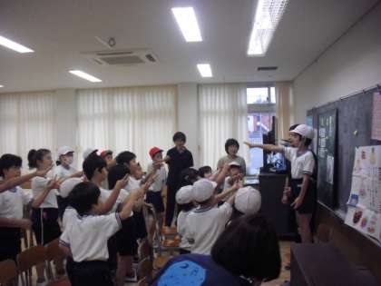 ひかり学級でお誕生日を迎えたお友達におめでとうの気持ちを伝えるお誕生会をしていました。友達が楽しみにしているプレゼントは何か、クイズ形式で当てます。