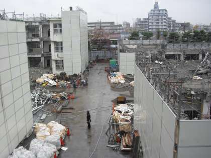 芦花小・中学校の改築工事が進みました。久しぶりに仮設校舎の音楽室からの撮影です。工事の様子がかなり広く見渡せるようになりました。