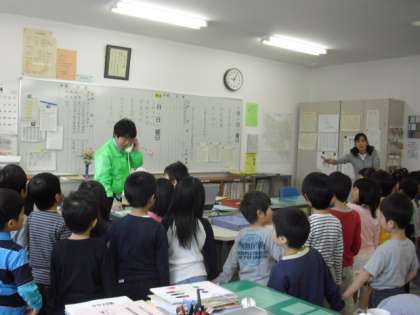 初めて入る校長室や職員室では、興味津々と教室の様子を見わたしていました。来週は2年生のパートナーといっしょに、校舎内をたんけんする予定です。子どもたちも楽しみにしています。