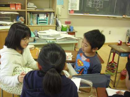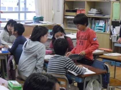 近くの友達に自分の考えを説明します。