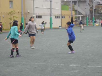 子供たちは朝から寒さに負けずに縄跳びにチャレンジです。