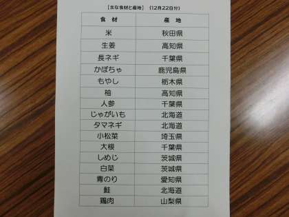 12月22日の給食