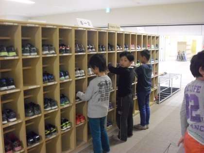 昇降口でも、自分のクラスだけでなく、他の学年の靴箱の靴も、きれいに整頓してくれました。きれいに靴が並んでいると気持ちがいいですね〜。みんなどうもありがとう!