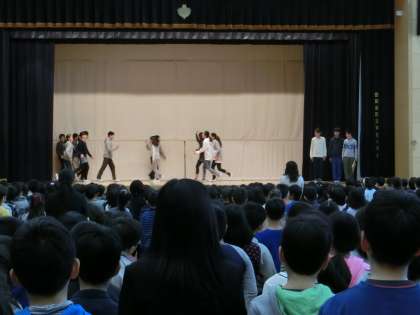 と舞台上で、あいさつパフォーマンスを披露してくれました。