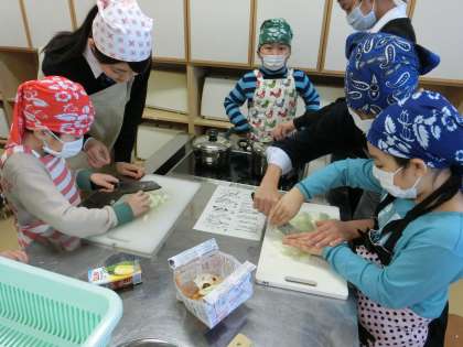交流活動ですから、中学生が家庭科室に