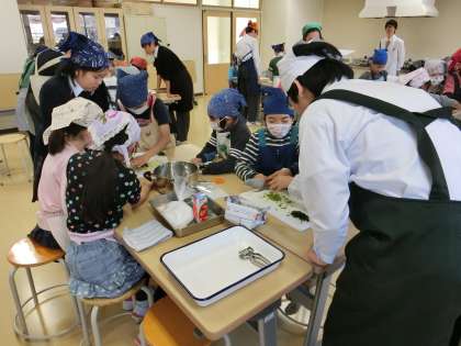 3年生が蒸しパン作りをし、お世話になった中学2年生に