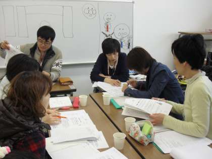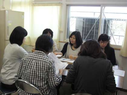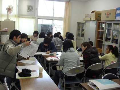 お休みの日にもPTA室は大賑わいです。今日は校外委員会の方たちと役員さんたちが真剣な話し合いを重ねています。