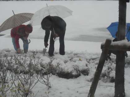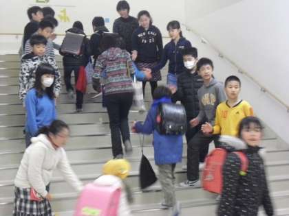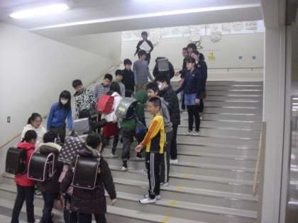 花に積もった雪をよけてくれていました。やさしい心の表れを見て朝からいい気持ちになりました。階段では6年生があいさつハイタッチで登校した児童のお出迎えをしてくれました。