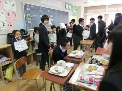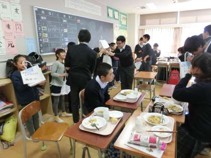 学校公開でいらした保護者の方々にもお手伝いいただき、