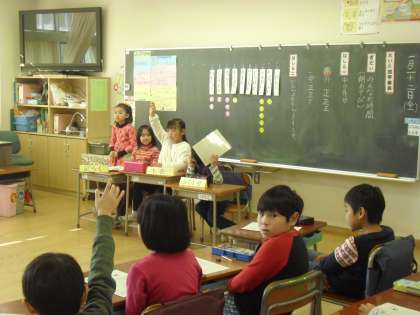 2年生の教室では学級活動〜司会グループが話合いをすすめ、みんなが手を挙げて意見を伝えていました。相手の意見をわかろうとして受け取る。自分の考えを理解してもらえるように伝える。大事な力です。