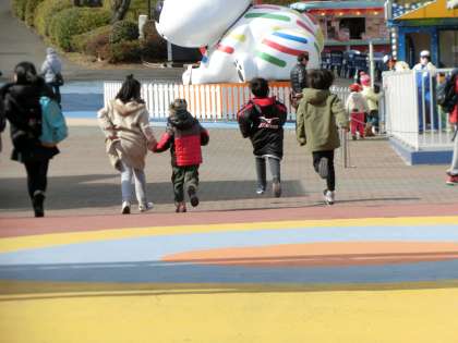 読売ランド内では、フリーパスチケットを胸に貼り、