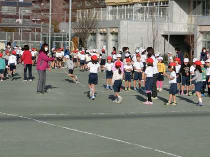 「長なわ跳び」が校庭のあちらこちらで