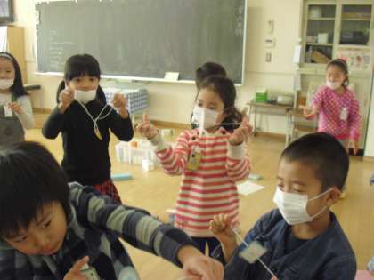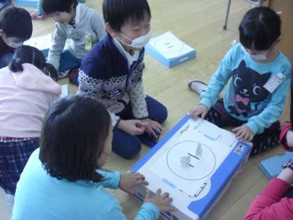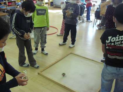 こま、ぶんぶんごま、かみずもう、おはじき、お手玉、あやとり・・・とても楽しそうに、教え合いながら活動していました。
