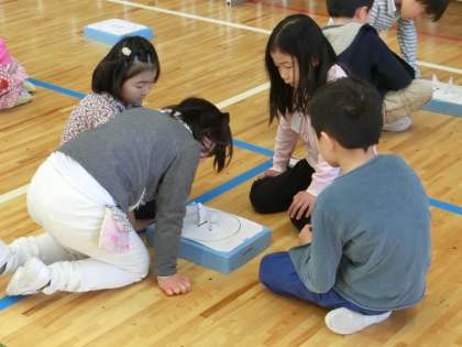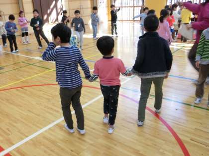 来てくれた保育園生に練習の成果を見せ、一緒に遊んでいました。