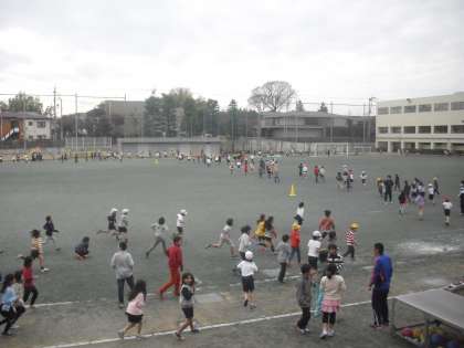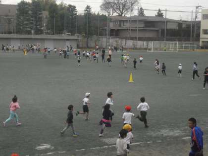 みんあ寒さに負けずに風をきって、元気に校庭を走り抜けていました。