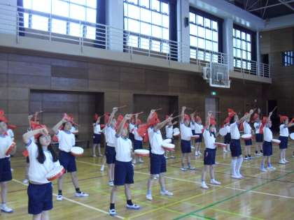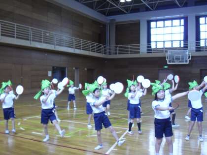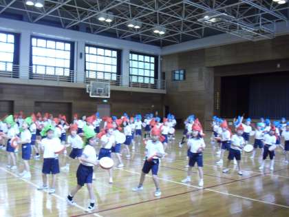 3年生のエイサーの様子です。頭の「サージ」は今日初めて巻いたそうです。それにしてはうまく巻けていました。