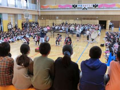 「6年生を送る会」、4年生は、運動会で踊った”ソーラン節”を